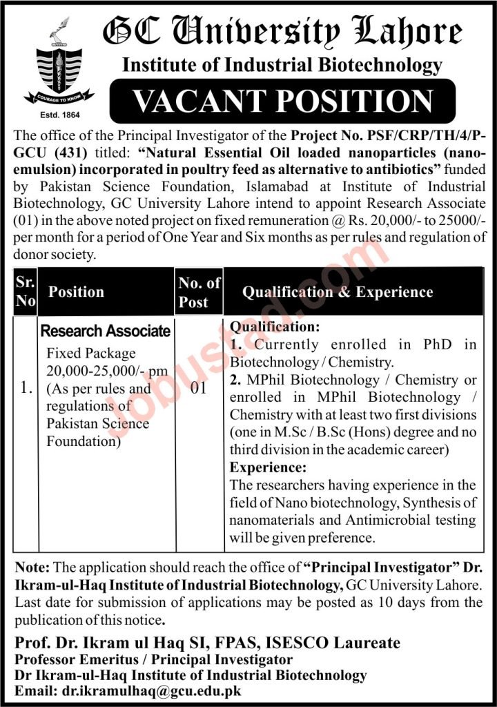 GCU Lahore encourages innovative research and offers opportunities for research fellows and postdoctoral researchers to work on cutting-edge projects. These positions provide a platform for scholars to collaborate with experienced faculty members and contribute to groundbreaking research in various disciplines.