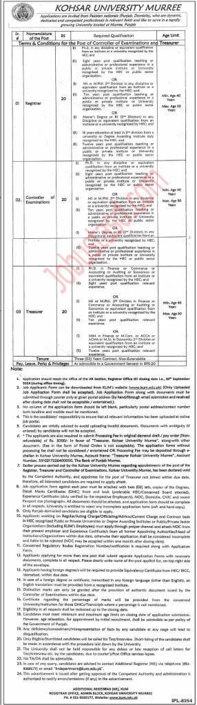 Kohsar University is excited to welcome new talent to its team and looks forward to receiving applications from dedicated individuals who are eager to contribute to the institution’s mission. Don’t miss this opportunity to be part of a renowned university in one of Pakistan’s most beautiful locations.