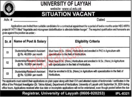 The University of Layyah is always on the lookout for talented educators. Faculty positions are available in multiple departments, from science and engineering to arts and humanities. These roles are ideal for individuals who are passionate about teaching and want to make a meaningful impact on students’ lives.
